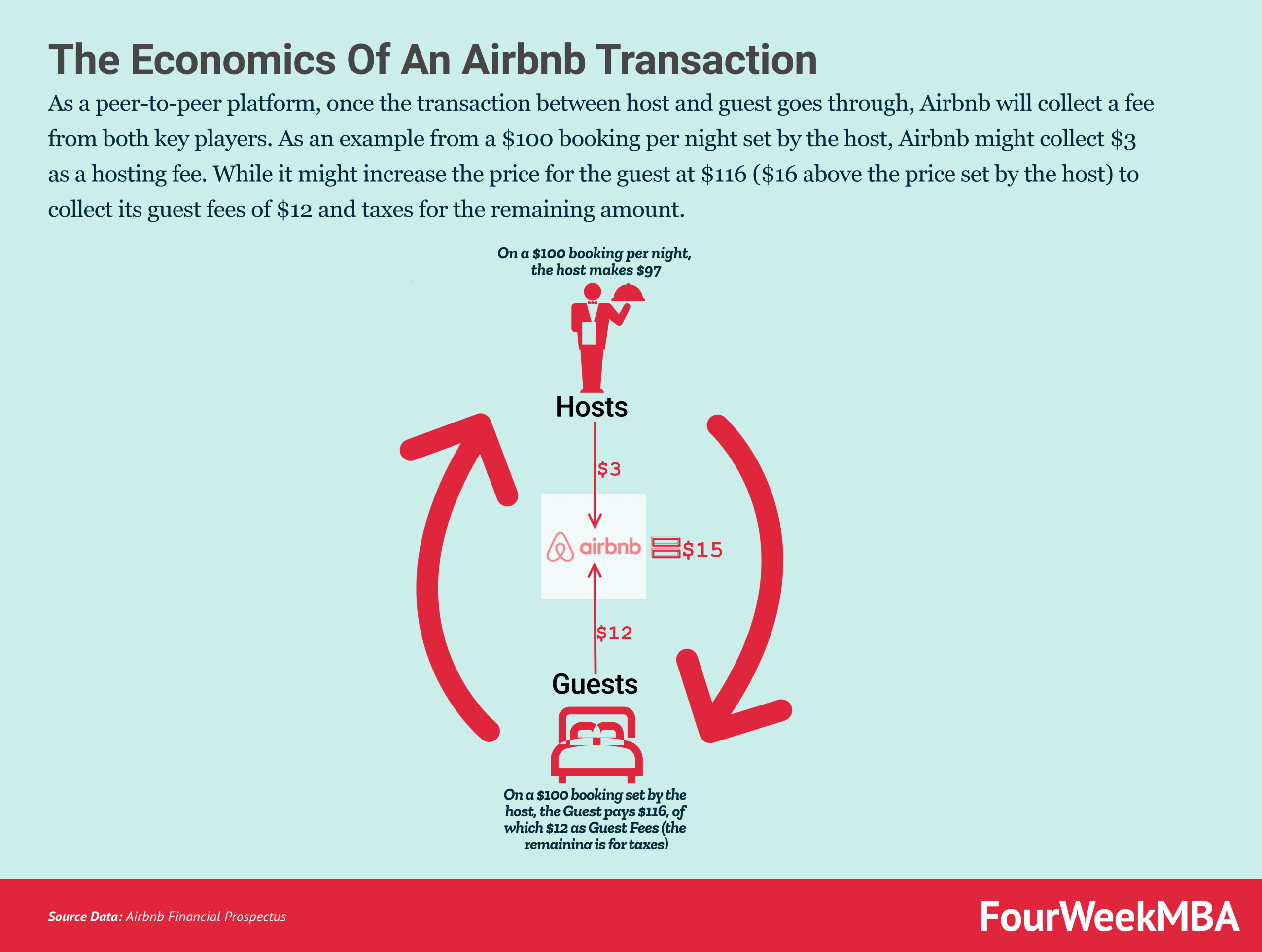 Airbnb is a peer-to-peer platform business model, leveraging two-sided network effects and making money by charging guests a service fee between 5% and 15% of the reservation. In comparison, the commission from hosts is generally 3%.