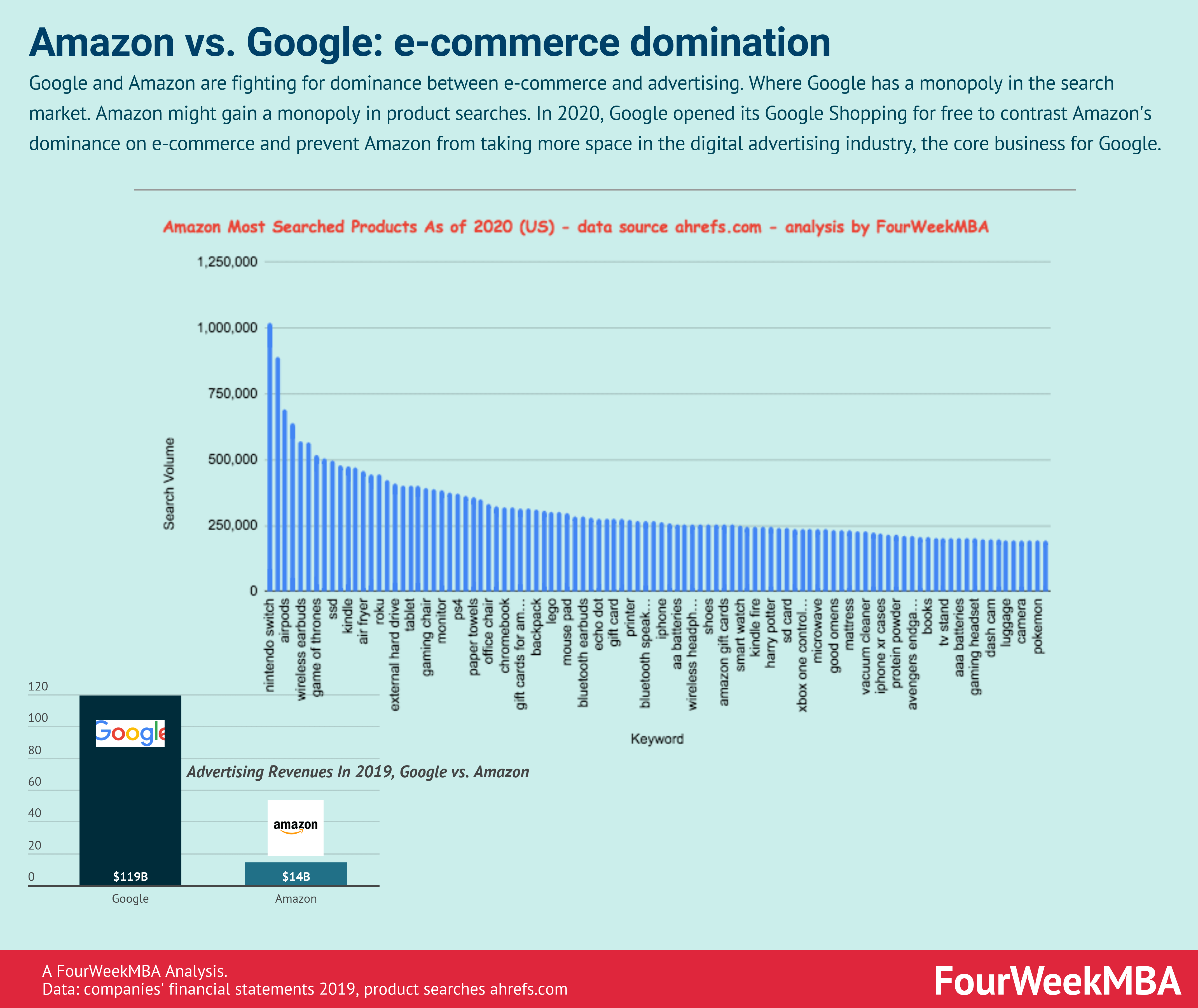 For instance, Amazon and Google began an arm wrestle for e-commerce domination.