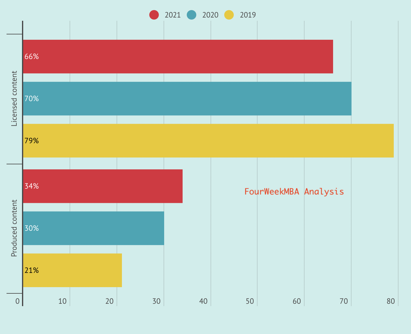 On the other hand, starting in 2013, Netflix started to invest more and more into produced content.
