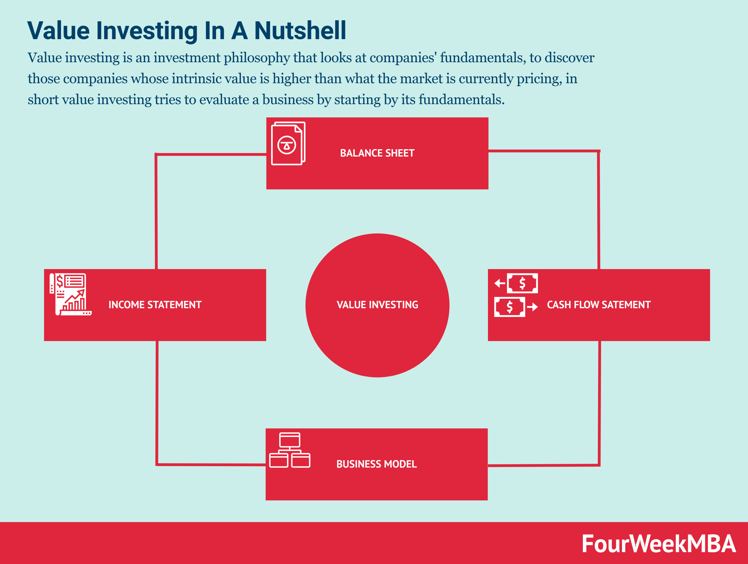 Value investing is an investment philosophy that looks at companies’ fundamentals, to discover those companies whose intrinsic value is higher than what the market is currently pricing, in short value investing tries to evaluate a business by starting by its fundamentals.