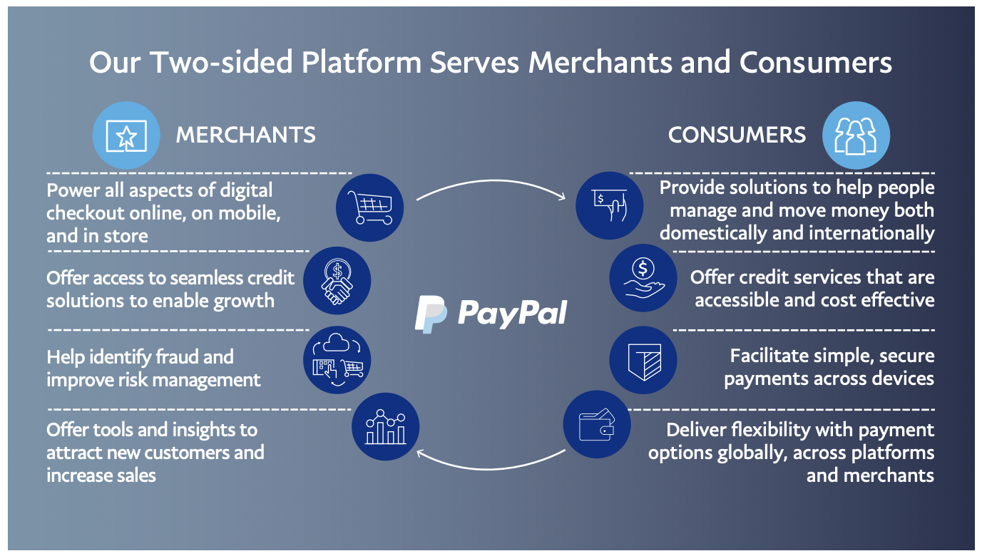 - Two-sided network—PayPal offers an end-to-end product experiences while gaining valuable insights into customer behavior.