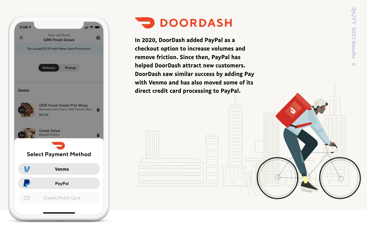 Example of the DoorDash PayPal integration, as a key partnership in 2021.